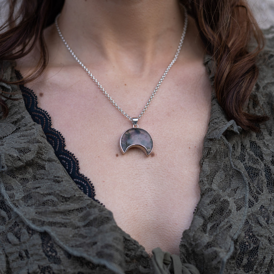 Te presentamos una pieza muy especial: Gaia, una Lúnula de Ágata Musgosa es una joya...