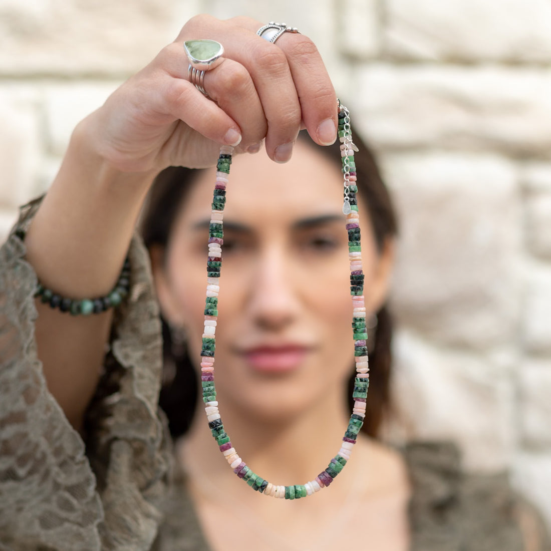 Collar Callisto Rubí, Zoisita y Ópalo Rosado | Alma en renacimiento