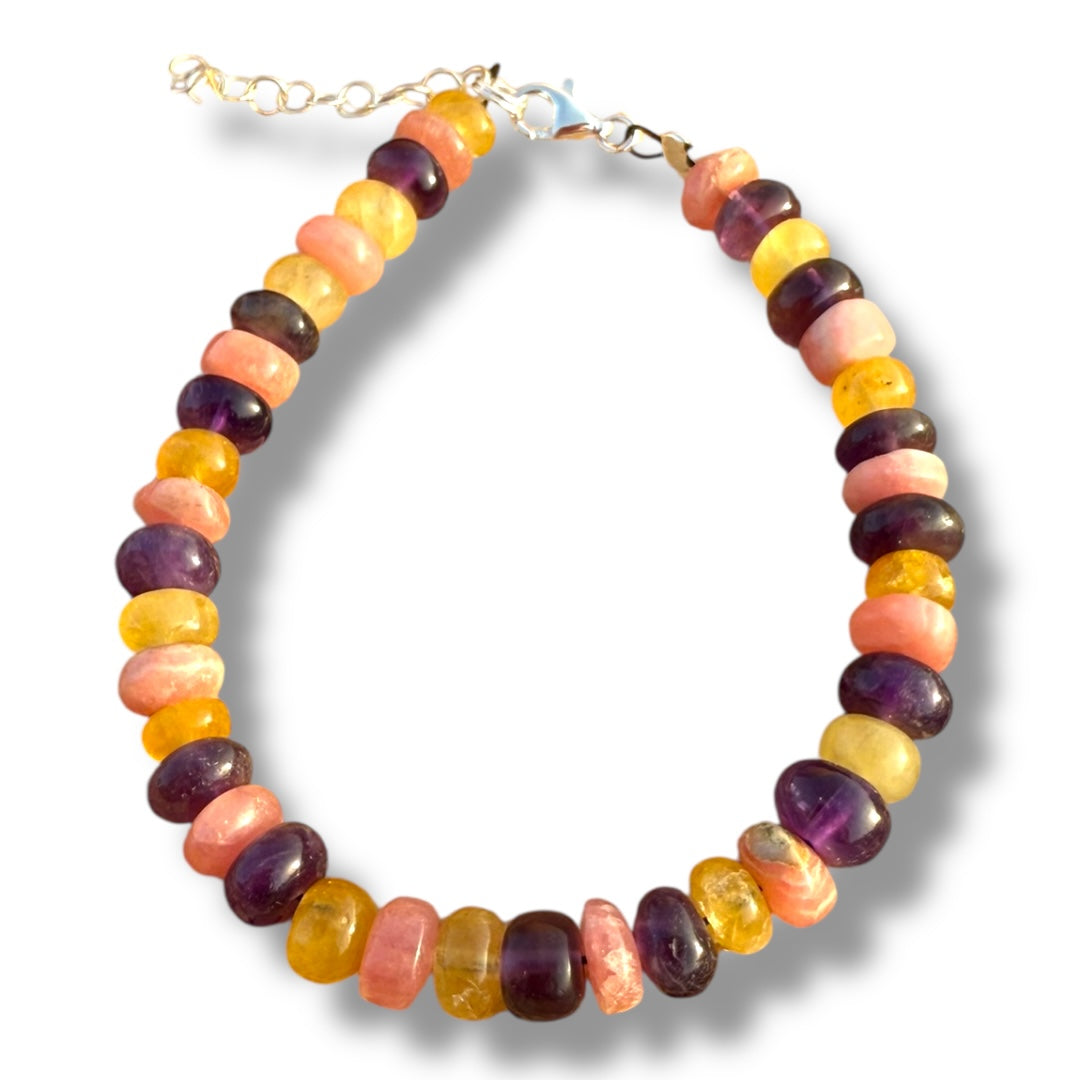 Pulsera Eos de Heliodoro, Amatista y Rodocrosita | Renacer, claridad y amor propio