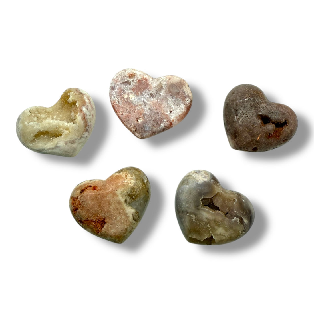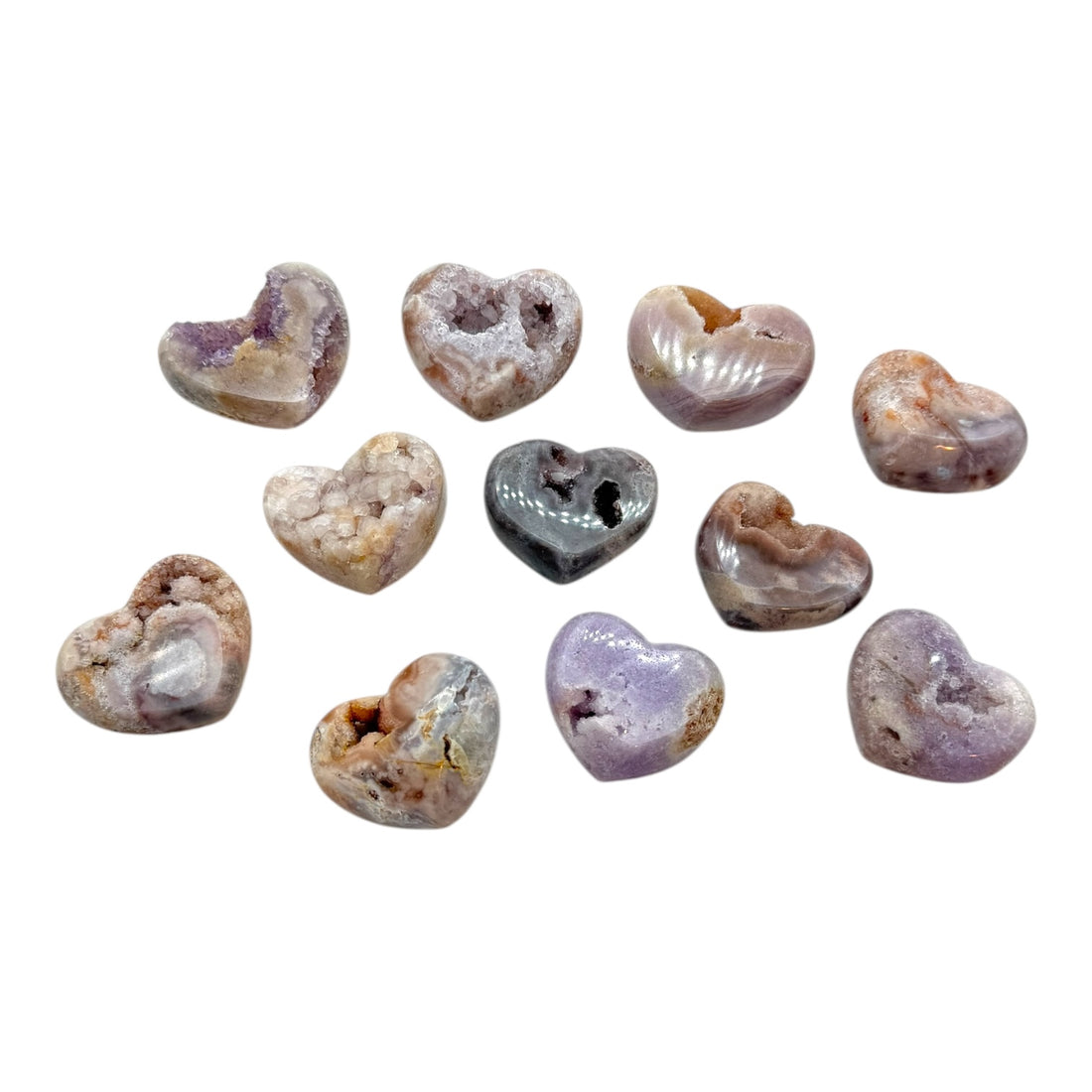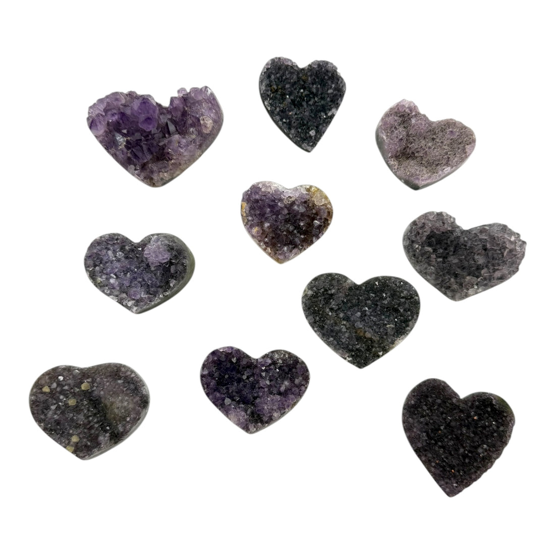 Cada corazón de amatista rosa es una joya natural única, tallada con cuidado para resaltar...