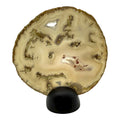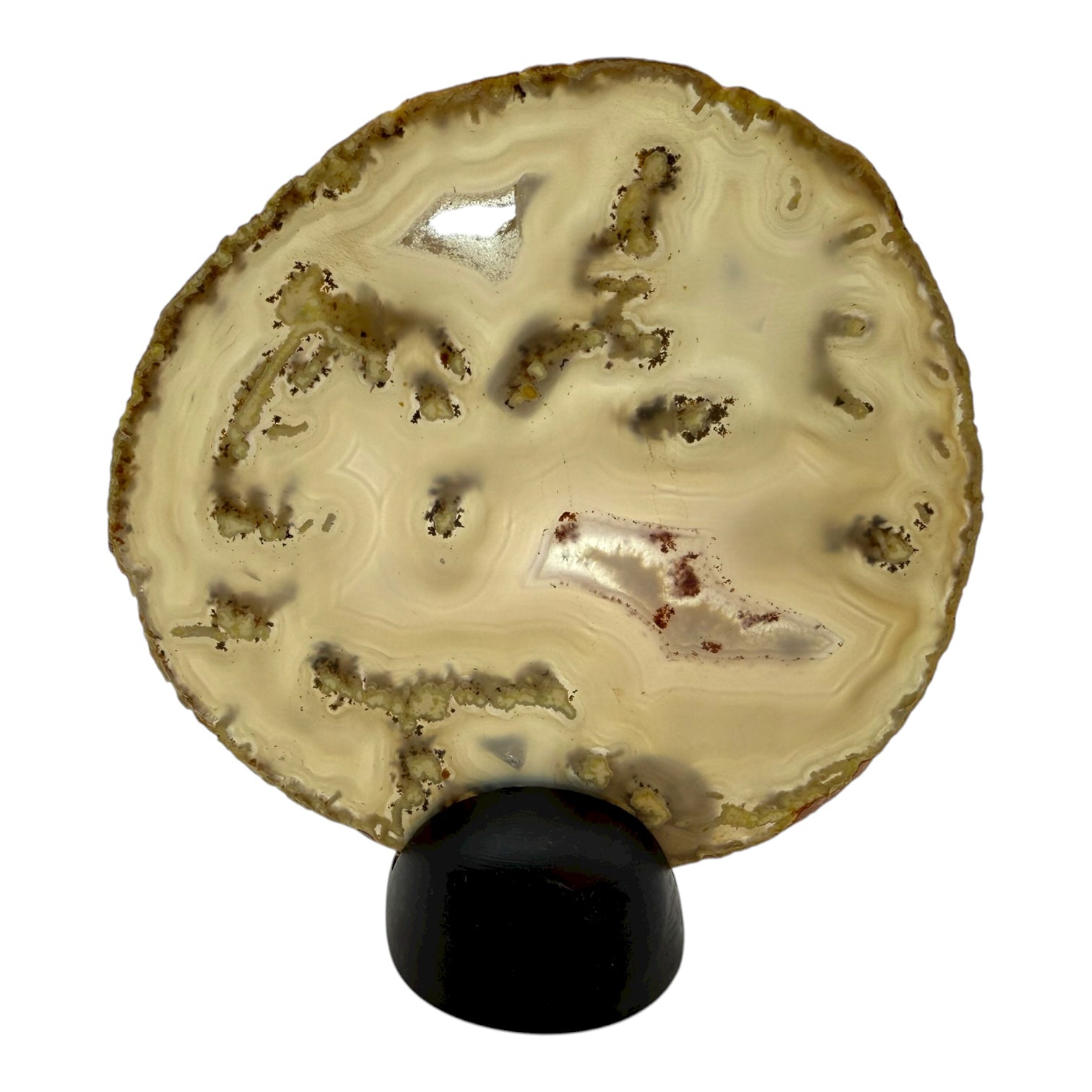 Este ejemplar de Ágata Merlinita con formaciones de ágata dendrítica es una pieza fantástica y única, donde la belleza natural se combina con un profundo simbolismo espiritual. Sus patrones oscuros y claros, entrelazados con inclusiones dendríticas que parecen pequeños paisajes o ramas, evocan la conexión con la naturaleza y los misterios de la Tierra.
