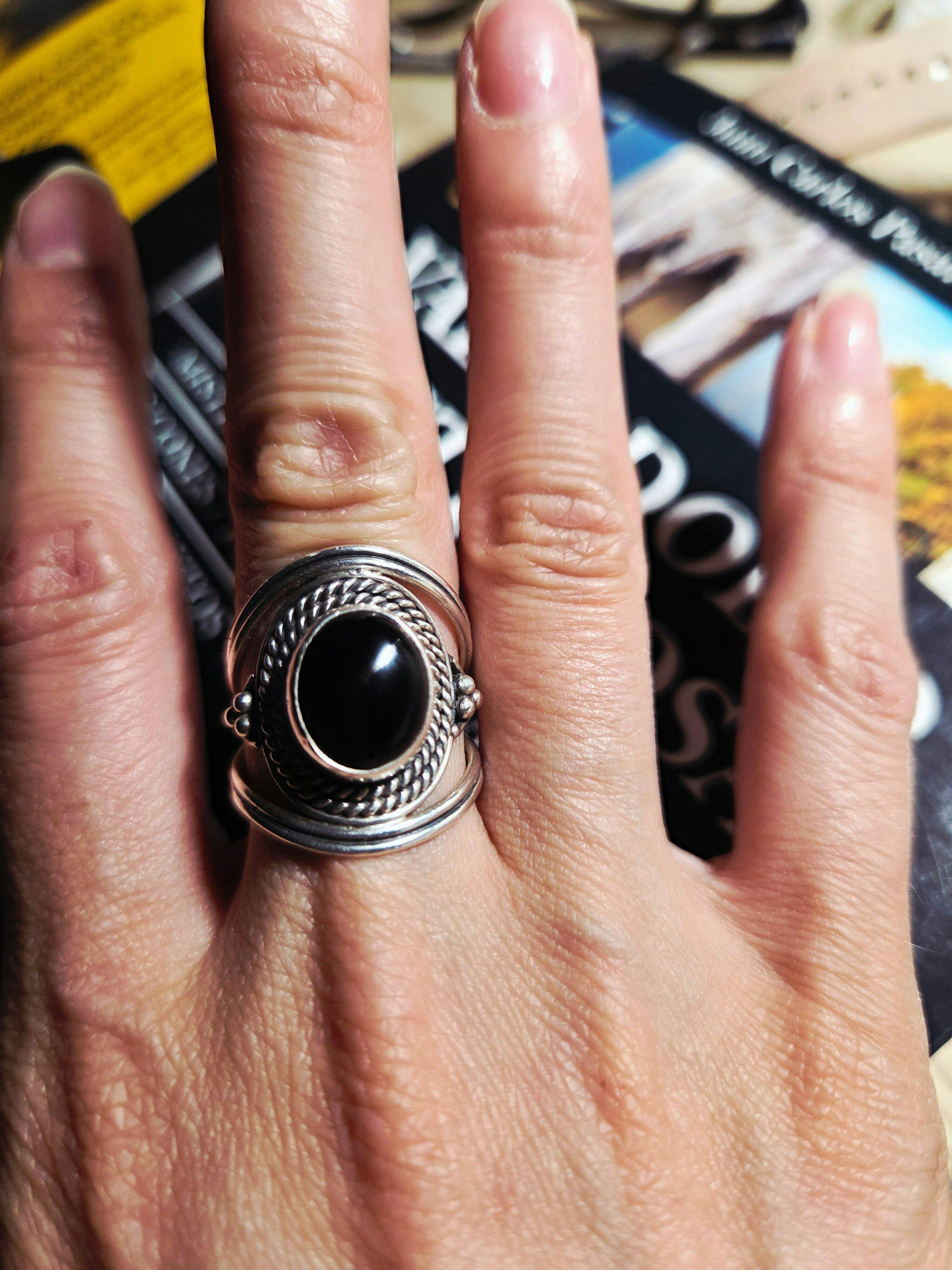 El anillo Onyx es una joya que habla con voz propia. Fabricado en plata de ley 925, este diseño combina elegancia, sobriedad y poder simbólico. Su estructura ajustable te permite escoger entre dos medidas —pequeña o grande— para adaptarse cómodamente a tu dedo, envolviéndolo con carácter y estilo.