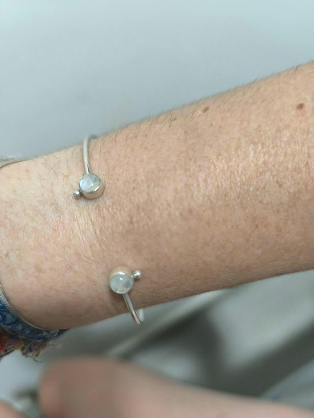 El brazalete Arianrhood es una joya intuitiva, nacida del equilibrio entre lo sutil y lo esencial. Elaborado en plata de ley 925, su diseño abierto se adapta suavemente a tu muñeca, rematado con dos esferas de piedra luna natural de 6 mm que parecen flotar como lunas gemelas sobre tu piel. Con su brillo nacarado y su forma etérea, este brazalete no solo adorna: despierta. Despierta la conexión con tu mundo interior, tu feminidad, tus ciclos y tus raíces emocionales más profundas.