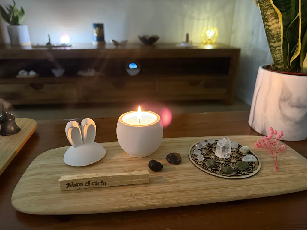 Vela, sahumerio, amuleto, mini altar o elemento simbólico para acompañar el mes.