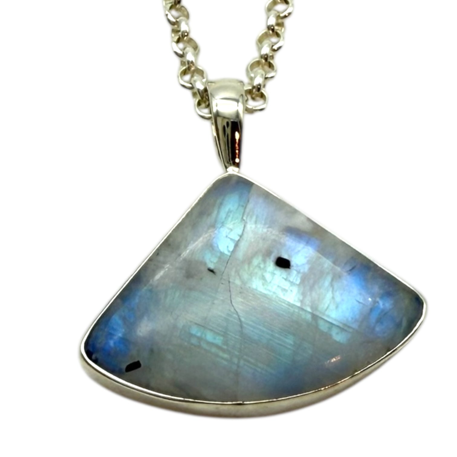 Este colgante de Piedra Luna natural es una pieza única y artesanal, cuidadosamente engarzada en plata de ley 925, en un diseño sencillo y elegante que permite que la piedra sea la protagonista.