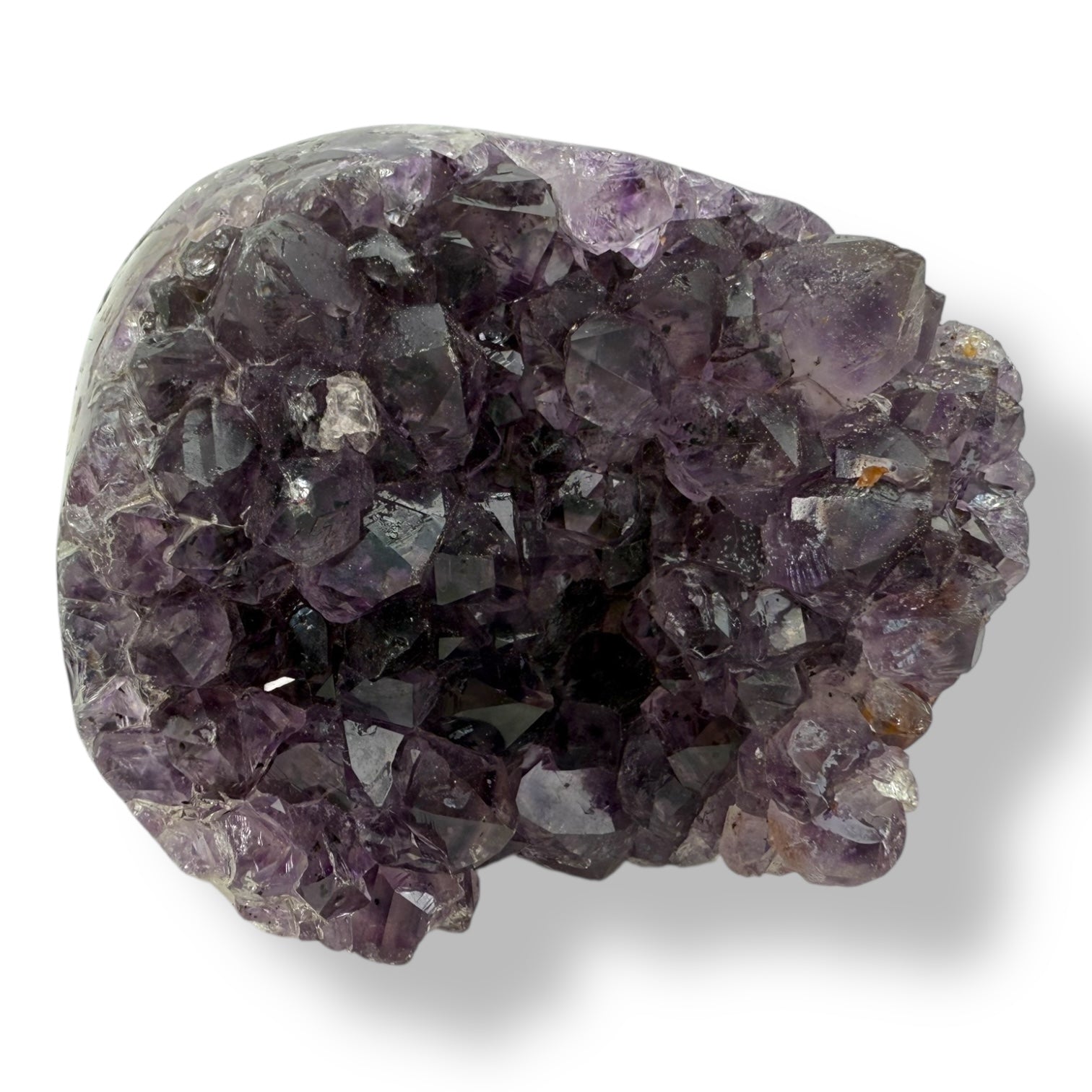 Esta drusa de amatista es una pieza única e irrepetible, formada por un conjunto de cristales que emergen en armonía desde su base natural. Sus cavidades le otorgan un carácter exclusivo, aportando matices y texturas que la convierten en un verdadero tesoro de la Tierra.
