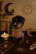 Su presencia aporta un toque místico y elegante a cualquier espacio, convirtiéndose en un objeto de decoración que inspira calma, creatividad y conexión con la intuición. Cada escultura es distinta, por lo que puedes elegir la que más resuene contigo.