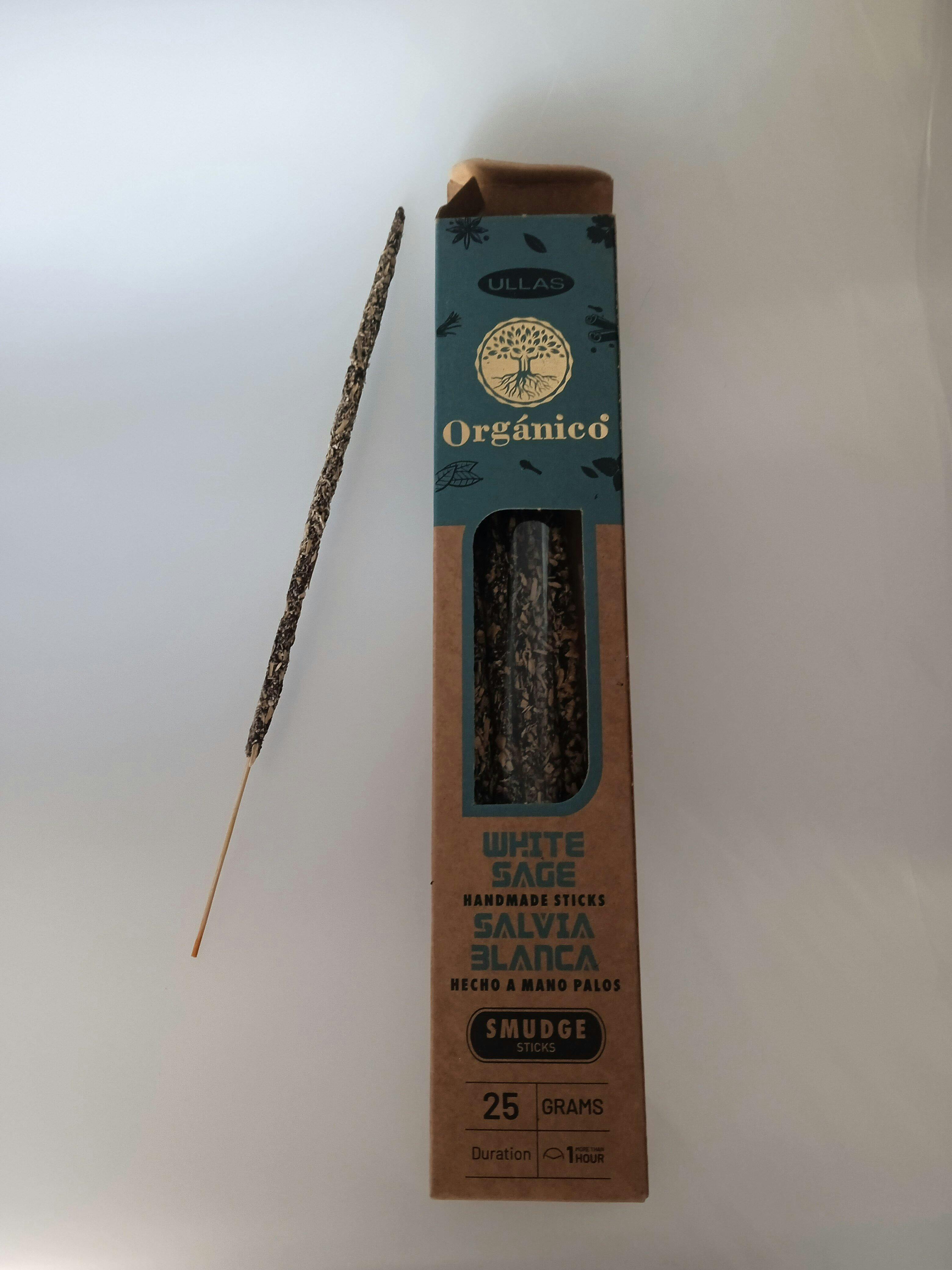 El Incienso Natural de Salvia Blanca de Ullas está elaborado a mano con resinas orgánicas puras y aceites esenciales naturales, creando una varilla de alta calidad para rituales de limpieza energética y espiritual. Su aroma es intenso, terroso y profundamente purificador.