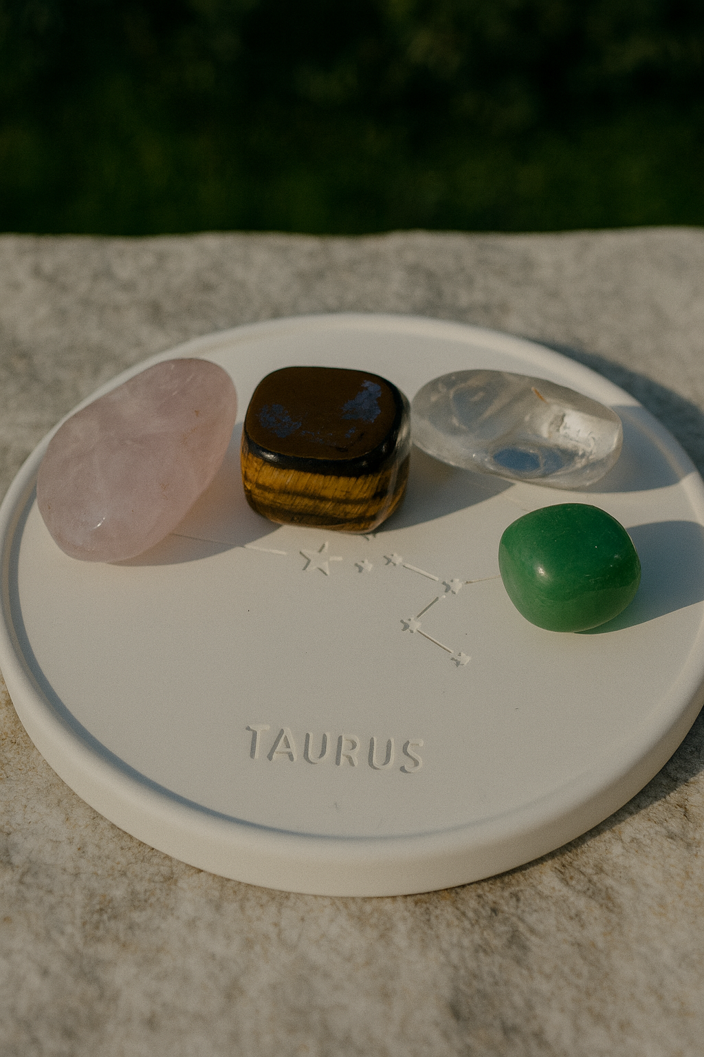 Hecha a mano, con la constelación de Tauro grabada. Perfecta para colocar las piedras, crear un altar personal o decorar tu espacio con energía equilibrada.