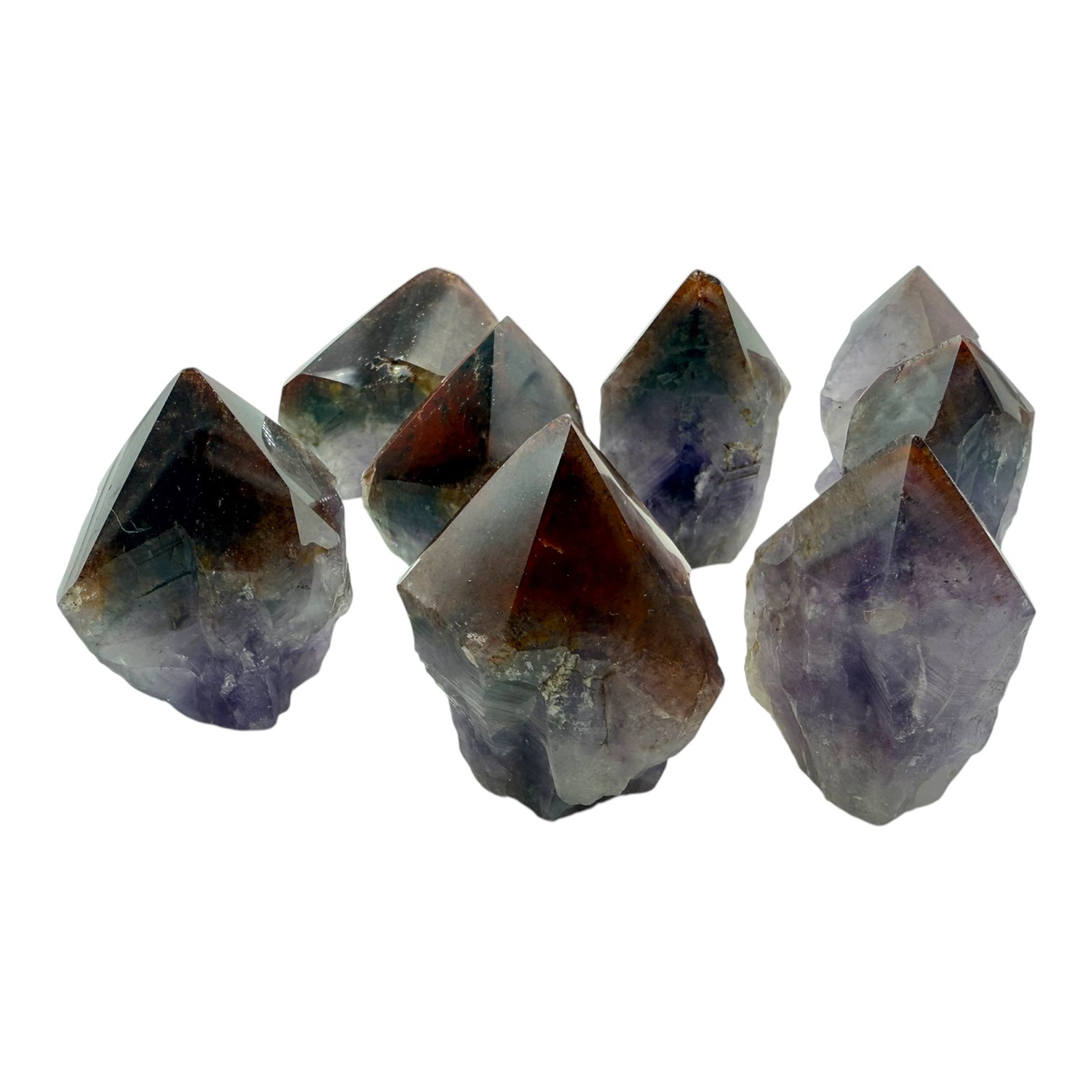 La Auralita Super 7, también conocida como la “Piedra de los Siete Sagrados”, es una gema excepcional que combina de forma natural siete minerales en uno solo: amatista, cuarzo claro, cuarzo ahumado, goethita, lepidocrocita, cacoxenita y rutilo. Esta punta pulida es ideal para terapias energéticas, meditación profunda y expansión de la conciencia.