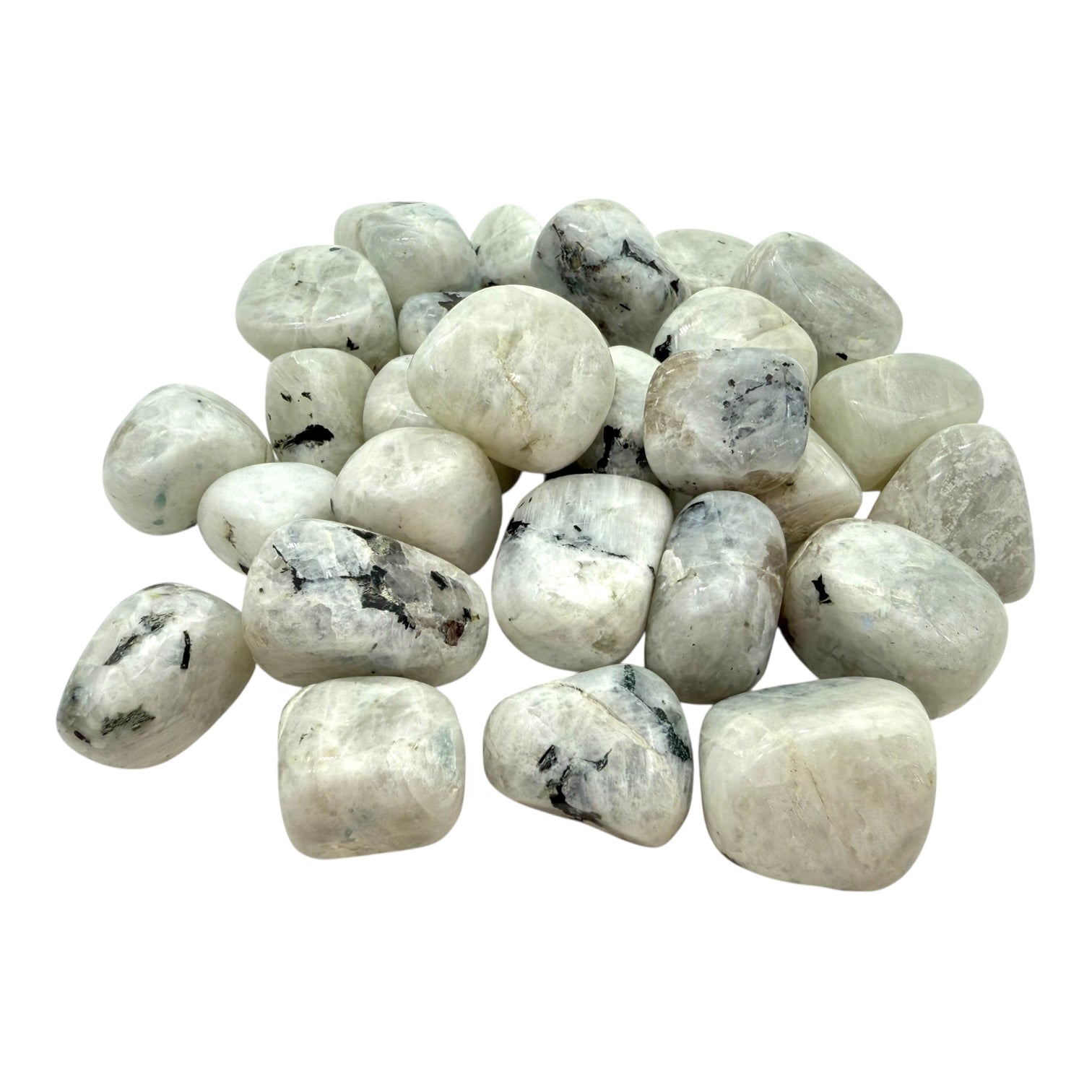 El rodado extra de Piedra Luna es una gema muy apreciada por su brillo nacarado y sus reflejos plateados, asociados a la energía lunar y femenina. Conocida como la piedra de la intuición y los nuevos comienzos, ha sido utilizada desde la antigüedad como talismán de protección y guía espiritual.