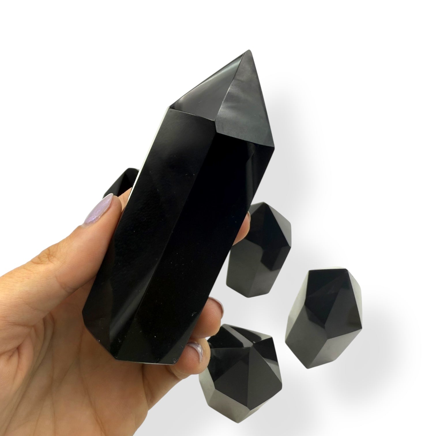 Esta torre de obsidiana negra tallada en 6 caras es una pieza poderosa y elegante, creada para dirigir y proyectar la energía de manera precisa. La forma de torre simboliza crecimiento y conexión entre la Tierra y el cielo, mientras que sus seis lados armonizan la vibración de la piedra, potenciando su capacidad de protección y de guía espiritual.
