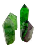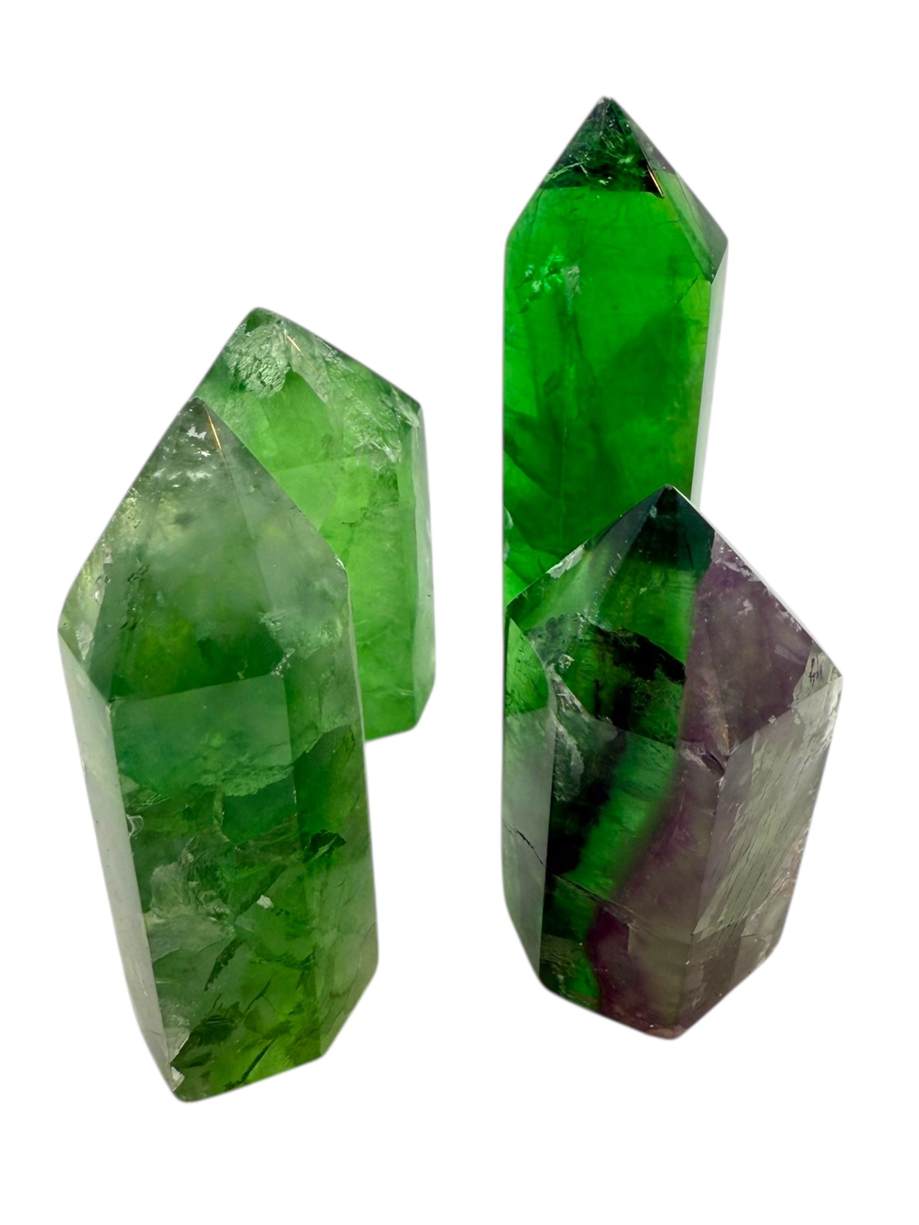 Descubre el poder armonizante de la fluorita verde con estas majestuosas torres en punta talladas a partir de piedra 100% natural. Con alturas entre 8 y 10,5 cm y un peso aproximado de 152 a 162 gramos, cada pieza es única en vetas, transparencias y matices verdes que evocan paz, frescura y renovación.