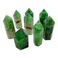 Descubre el poder armonizante de la fluorita verde con estas majestuosas torres en punta talladas a partir de piedra 100% natural. Con alturas entre 9 y 11 cm y un peso aproximado de 260 a 420 gramos, cada pieza es única en vetas, transparencias y matices verdes que evocan paz, frescura y renovación.