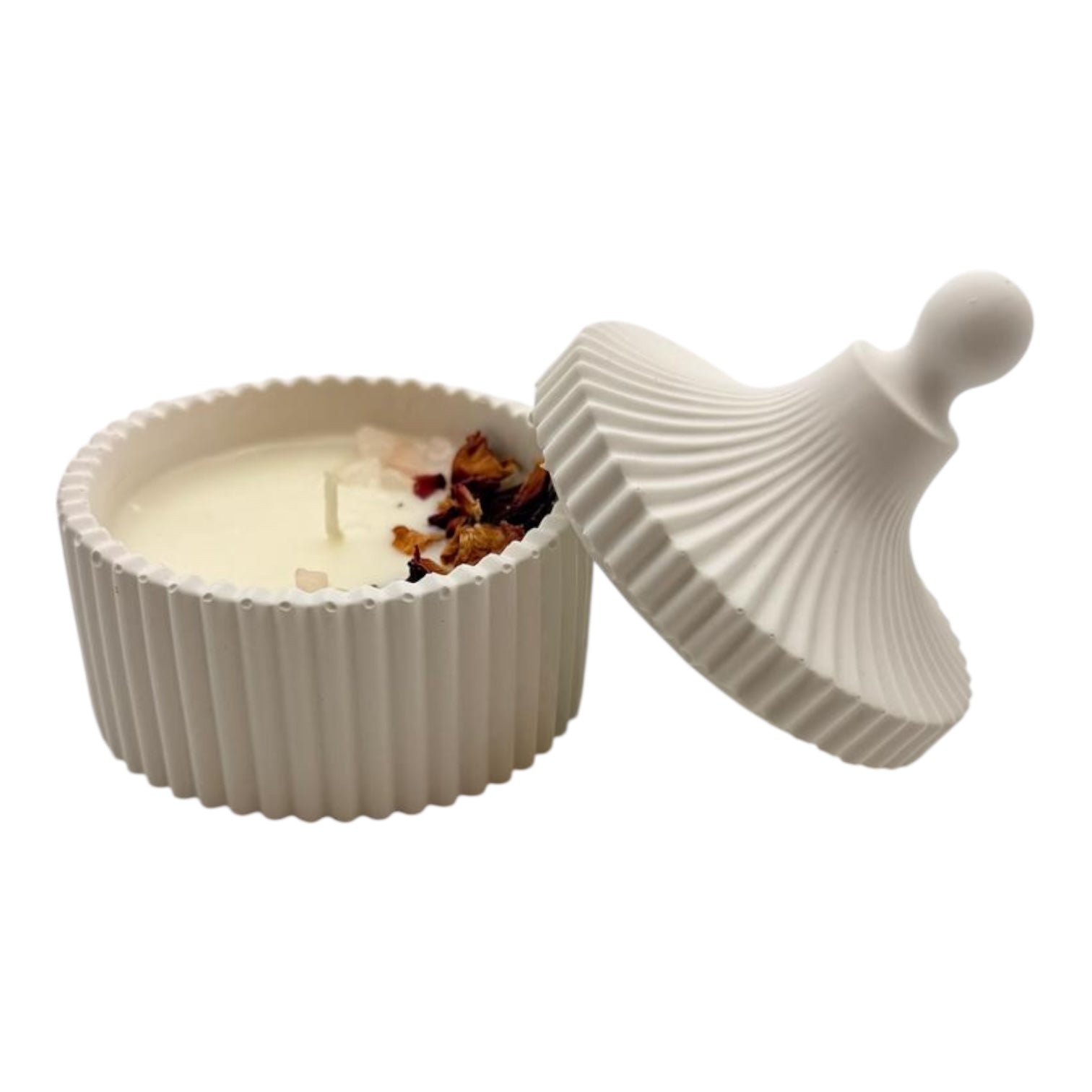 La vela AFRODITA es un delicado ritual de amor y armonía creado para envolver tu espacio con dulzura y serenidad. Elaborada artesanalmente con cera de soja 100% natural y perfumada con una mezcla equilibrada de aceites esenciales de rosa y menta, combina la energía del amor con la frescura de un nuevo comienzo.