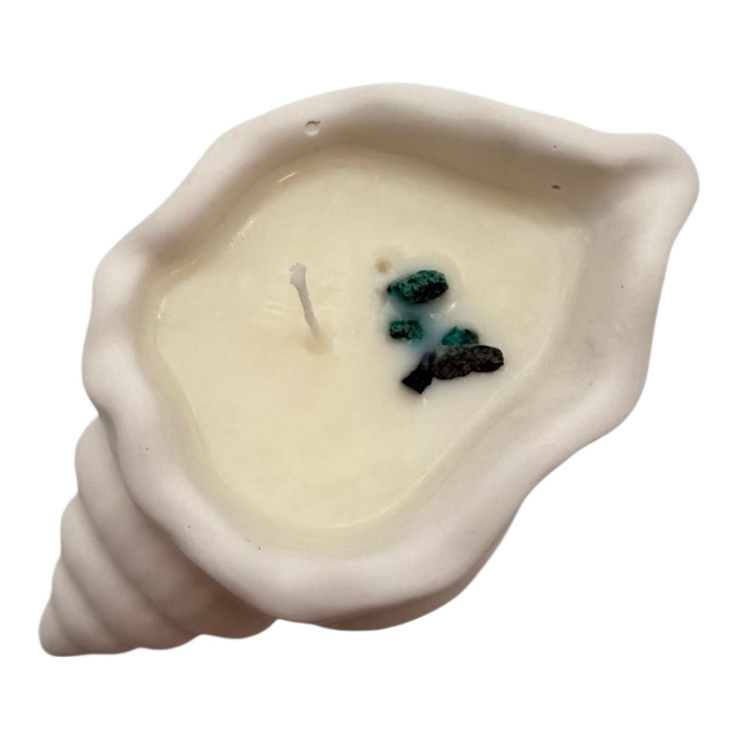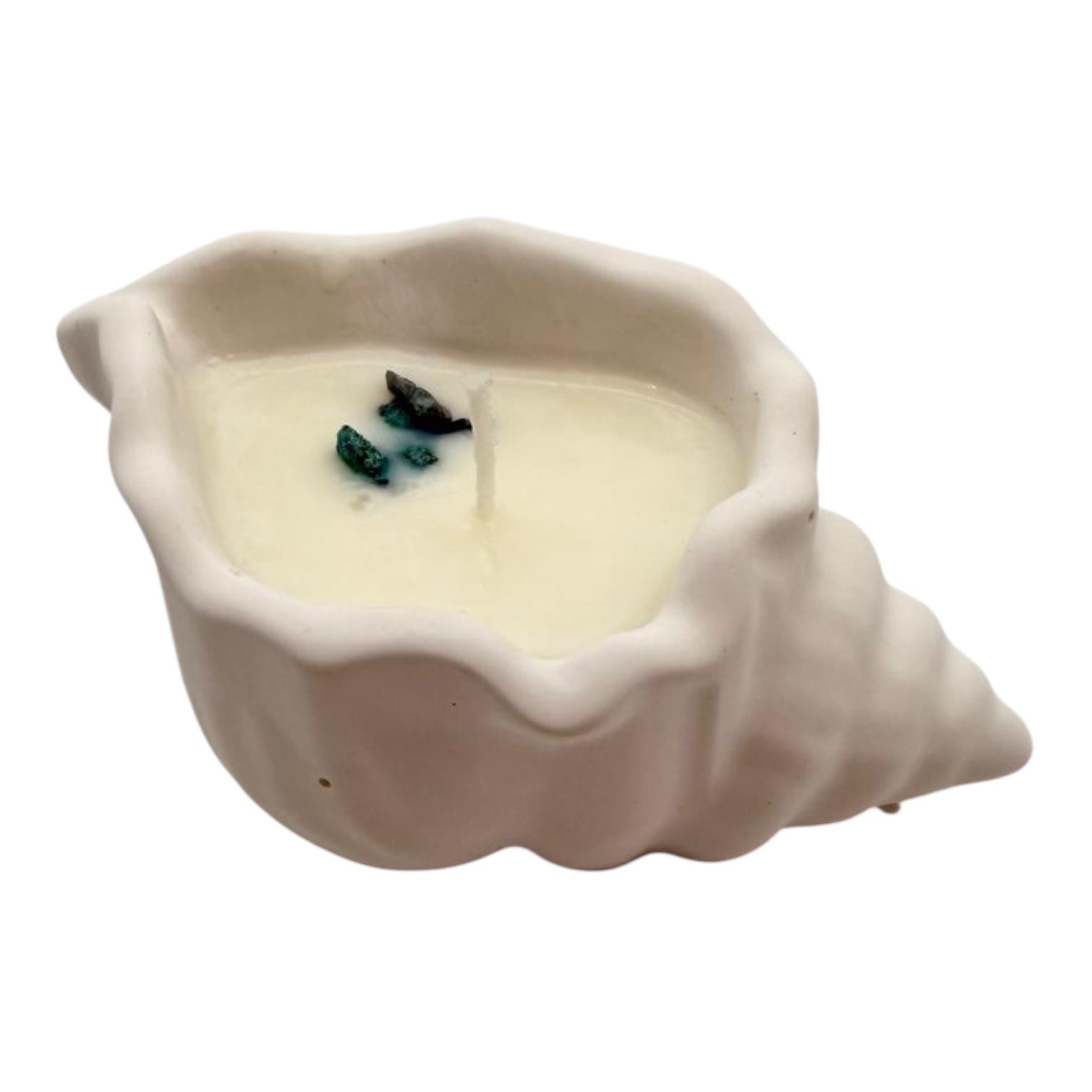 Su forma de caracola, de 10 cm de largo por 4 cm de alto, simboliza el flujo de la vida, la sabiduría interior y la conexión con lo femenino sagrado. Al encenderla, su aroma floral y salino limpia el ambiente, revitaliza la energía y envuelve el alma con serenidad y dulzura.