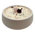 El recipiente de resina vegetal, de 18 cm de largo por 6 cm de ancho, contiene 4 mechas de algodón natural, que ofrecen una combustión limpia y duradera de aproximadamente 45 a 50 horas.